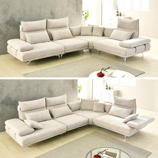 자네트 볼타 4인용 카우치 가죽소파 (3인용+카우치) 4인용쇼파, 아이보리